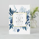 Notre mariage Winter Azure sauvez la date encadre vos détails mariages avec une bordure carré élégante de feuillage d'aquarelle glacée dans les tons marine et bleu poussiéreux, avec de véritables garnitures en feuille d'or sur un arrière - plan blanc immaculé. Un regard moderne et élégant sur la tendance botanique.