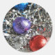 Colourful Christmas tree ornaments on tinsel photo sticker or can be used as an envelope seal. Comes in sheet of 20