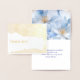 This card is shown in white matte finish card stock paper with Thank You in real gold foil on the front along with a bold floral pattern in subtle gold foiling. Inside is shown with a blue floral image above the white background, a pre-written greeting which you can keep as is or customize to your liking shown in deep blue. Personalize or buy as shown,