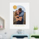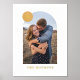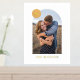 Showcase a cherished engagement, wedding, or family photo with this custom art print, which features a large, modern arch frame. In the top corner, there is a colourful circle with space for a monogram. Both the name and monogram are pressed in gold or silver foil for a more luxurious feel. This design is versatile enough to work with a variety of home decor styles.