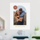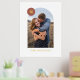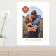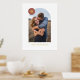Showcase a cherished engagement, wedding, or family photo with this custom art print, which features a large, modern arch frame. In the top corner, there is a colourful circle with space for a monogram. Both the name and monogram are pressed in gold or silver foil for a more luxurious feel. This design is versatile enough to work with a variety of home decor styles.