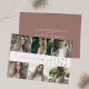 Modern graduation announcement card features six of your favourite photos aligned side by side in two rows, with your graduate's name displayed at the centre in rose gold foil lettering. Personalize with your school and graduation year through the centre. Add a personal message and an additional photo to the back.