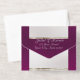 This elegant All In One wedding invitation features a silver pearl center on a plum background, an ornate frame and scroll heart with bride & groom's names in foil. Designed to coordinate with the "Ornate Frame & Hearts" Wedding Collection. To change details, click «Personalize». To move the text or change the text size, font, or color click «Click to customize further»