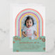 Des amis Invitations de tous âges à la fête d'anniversaire de votre enfant avec cette invitation à thème rétro. Le design comprend une photo d'enfant encadrée par un arc-en-ciel coloré. Les détails de l'événement sont placés sur une conception de nuage simple, et entourés d'une poignée de marguerites pressées en feuille d'or ou d'argent. L'arrière de la carte comporte un motif en diagonale pour coordonner les couleurs. Cette invitation serait également parfaite pour un baby shower !
