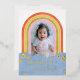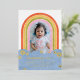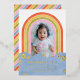 Des amis Invitations de tous âges à la fête d'anniversaire de votre enfant avec cette invitation à thème rétro. Le design comprend une photo d'enfant encadrée par un arc-en-ciel coloré. Les détails de l'événement sont placés sur une conception de nuage simple, et entourés d'une poignée de marguerites pressées en feuille d'or ou d'argent. L'arrière de la carte comporte un motif en diagonale pour coordonner les couleurs. Cette invitation serait également parfaite pour un baby shower !