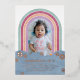 Invite friends of all ages to your child's birthday party with this retro-themed invitation. The design features a child's photo framed by a colourful rainbow. The event details are placed over a simple cloud design, and surrounded by a handful of daisies pressed in gold or silver foil. The back of the card features a diagonal pattern in coordinating colours. This invitation would also be perfect for a baby shower!