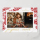 This elegant holiday photo card features a hand drawn border with red winter berries and foliage and a real gold foil flourished script greeting reading "Joyeux Noel" accenting a single customizable photo for a classic traditional holiday feel. The back adds unique interest with a matching red and white foliage pattern.