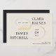 Announce your wedding date and location in chic classic style with these sleek save the date cards featuring your names in elegant black lettering, joined by an ornate swooping "and" in gold foil on a warm cream ivory background. Your wedding date is elegantly worked into the design, with the location and additional information along the bottom.