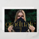 Cette faire-part moderne de graduation comporte un mot de diplômé dans une police serif branchée avec des accents tourbillonnants en feuille d'or réelle, créant une atmosphère élevée et de luxe. Ce texte d'études supérieures se trouve au-dessus d'une photo pleine page, mettant en évidence le diplômé. L'arrière de cette carte de faire-part de diplôme comporte deux photos, parfaites pour l'époque et maintenant, des photos d'enfance et de troisième année, ainsi qu'un endroit pour ajouter un message plus long partageant les réalisations du diplômé et les plans futurs.