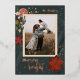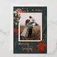 This holiday card features a single photograph framed by a vintage-inspired border of winter flowers and Christmas oranges in a beautiful palette of deep jewel tones accepted by a real rose gold foil greeting and family name.