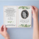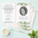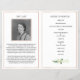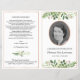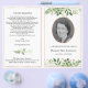 This folded funeral program features natural greenery watercolors for an uplifting celebration of life. Designed to be printed on both sides and supplied flat for you to fold, the front shows the name of the deceased and you can insert a favourite photograph into the rose gold effect oval frame whilst the inside can be edited with the order of service or whatever you wish. At a difficult time, this beautiful and gracious green foliage design with gold borders is suitable for a celebration of life service, a religious church memorial service or a humanist ceremony. The FAUX gold foil effect is printed and is NOT metallic.