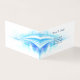 This folded business calling card is shown in a basic classic white with a blue wave abstract art print with navy blue text colour.