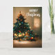 Share seasonal greetings with this stunning card featuring a miniature tree alight and glowing with festive lights.