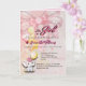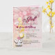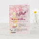 A folded baby girl shower invitation featuring a soft pink background, a decorative bow, and a cute elephant illustration with balloons. The design blends playful elements with a gentle, elegant layout. Fully customizable with event details, making it perfect for baby showers, celebrations, and welcoming a new baby girl.