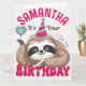 Surprise your birthday girl or boy with this personalized party sloth card.