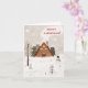 Hand drawn illustration of cozy cabin under a gentle snowfall create a peaceful holiday ambiance and evokes the magic of Christmas. Give comfort and warmth to your loved ones, add text inside of the card to add a personal message.