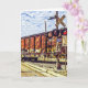 A freight train at a railroad crossing covers the front of this folded greeting card.