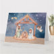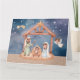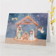 Folded Christmas card featuring a watercolor Nativity scene on the front, with a blank space inside for a personal message.