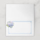 This folded name place card is shown in basic white with a lovely floral bouquet of hydrangeas and a classic dusty blue color border frame.