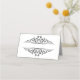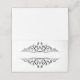 This folded name place card is shown in basic white with a elegant black flourish art print.