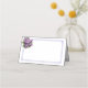 This folded name place card is shown in basic white with a lovely lilac flowers bouquet and a classic dusty lavender colour border frame.