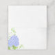This folded name place card is shown in basic white with a lovely blue hydrangea art print.