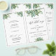 A folded wedding program with an ultra chic modern font featuring lush greenery and a faux silver border which will complement many wedding themes. Printed on both sides, the cover shows the venue whilst the inside can be edited with the ceremony and wedding party and is supplied flat for you to fold. This modern design with silver borders is suitable for a religious church memorial service or a humanist ceremony. The FAUX silver foil effect is printed and is NOT metallic. The foliage was painted here in our studio and is therefore unique to the Stationery Concierge.