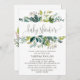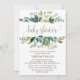 This foliage baby shower invitation card is perfect for a rustic baby shower. The design features a boho frame of green leaves and leafy greenery botanicals. The backing features a matching country wreath which can be personalized with the name of the mother-to-be.