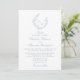 This wedding invitation embodies a timeless, classic aesthetic with an elegant light blue font colour and a delicate graphic of a foliage crest. The design reflects luxury, tradition, and refinement, making it the perfect choice for couples seeking a sophisticated and upscale look.