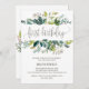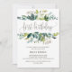 This foliage first birthday invitation card is perfect for a rustic birthday party. The gender neutral design features a boho frame of green leaves and leafy greenery botanicals. The backing features a matching country wreath which can be personalized with the name of the one year old.