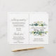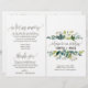 This foliage wedding program is perfect for a rustic wedding. The design features a boho frame of green leaves and leafy greenery botanicals. Include the name of the bride and groom, the wedding date and location, thank you message, order of service, bridal party and an "in loving memory" memorial.