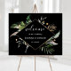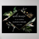 Ce panneau d'accueil mariage présente des feuilles de palmiers d'aquarelle, des feuilles de bananes, des feuilles tropicaux exotiques et des feuilles en faux or avec un cadre en faux diamant d'or. Il est parfait pour un mariage tropical, plage, été ou destination.