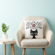 Folk Art Black Cat and Flowers Throw Pillow