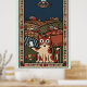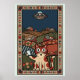 Folk Art Cat with UFO in Countryside Whimsical Poster