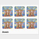 FOLK ART DEER IN AUTUMN FOREST, BIRD NEST & MOON SQUARE STICKER