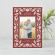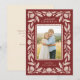 Send stylish, beautiful holiday greetings to your family and friends with this elegant, folk art inspired Christmas photo card. It features a hand drawn floral frame in ivory over a cranberry red background, as well as a scalloped inner design framing your photo. The back contains more text templates for further personalization.
