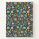 This folk art design features a pink, orange and teal floral pattern on a dark blue background.