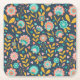 This folk art design features a pink, orange and teal floral pattern on a dark blue background.
