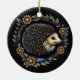 Folk Art Hedgehog in a Wreath of Blue Flowers Ceramic Ornament