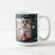 Whimsical folk art mistletoe holly evergreen pattern Christmas photo mug gift. Photo template on both sides you can change to your own family's photos.