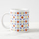 Folk Art Neon Flower Geometric Pattern Large Coffee Mug