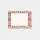 Folk art style flowers with green leaves are scattered over these Post-Its, with space to write in a red frame.
