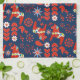 Folk Art Red Swedish Dala Horse Floral On Blue Kitchen Towel