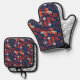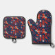 Folk Art Red Swedish Dala Horse Pattern Oven Mitt & Pot Holder Set