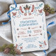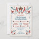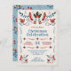 Scandinavian Folk art Christmas Party Invitations. Features hand drawn birds, floral elements with decorative branches in colours of muted red, blue and faux gold accents on a faux antique linen background. Perfect for the Christmas holidays!