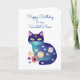Cute purple and blue folk art style cat and flowers personalized birthday card for a niece.
