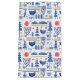 This folk art design features a woodland winter scene with birds, snowflakes and trees.