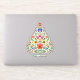 The sticker is meticulously crafted with precision, allowing for a clean and precise cut around the edges of the tree and its ornaments. This method creates a border around the design, making it easy to peel off from its backing while keeping the surrounding paper intact.