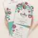 Folk Flowers Boho Turquoise Fiesta wedding All In One Invitation