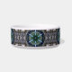 This is a heavy, durable bowl decorated with Tibbies of many colors, the perfect size for hungry/thirsty Tibs. The design is interesting and printing clear.
